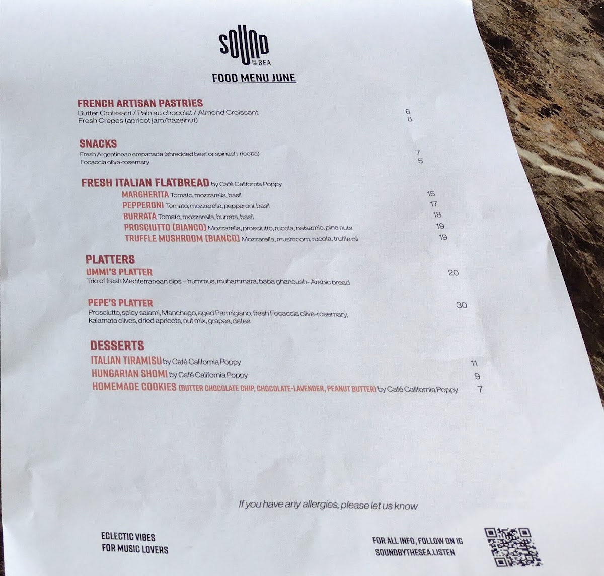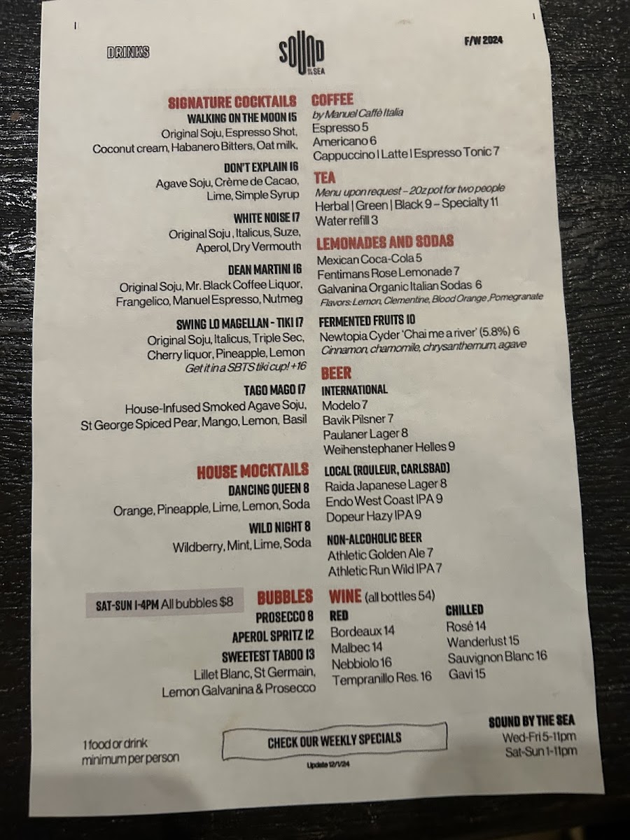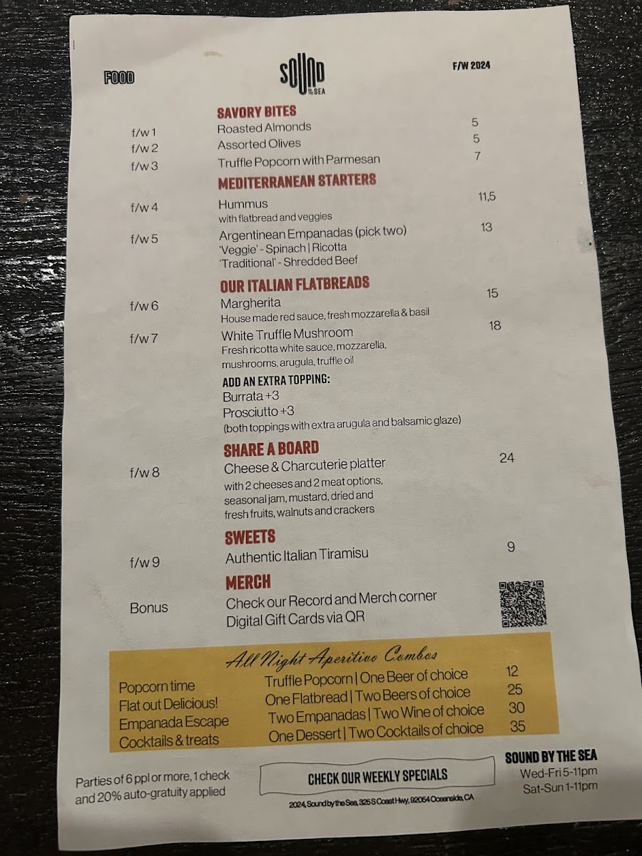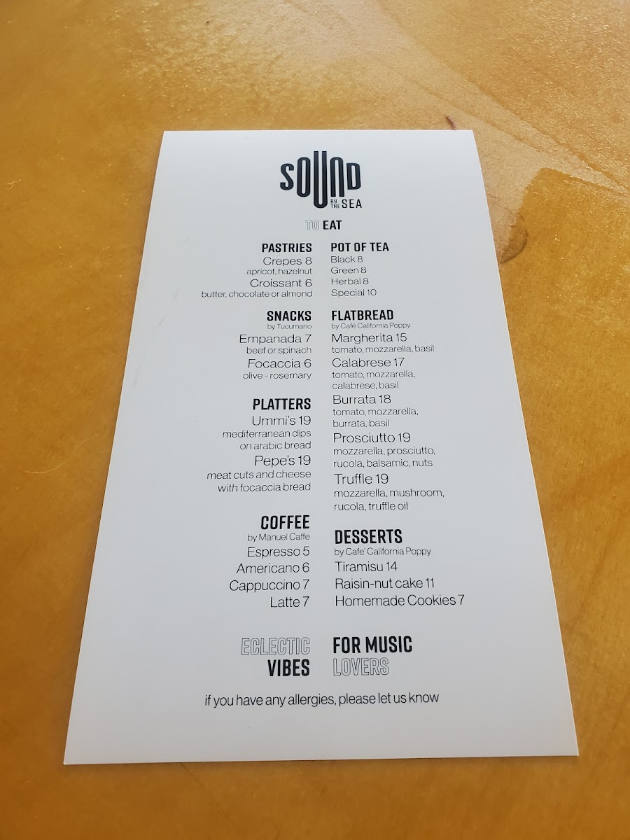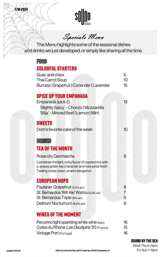 Sound by the Sea Menu (Update 2025)