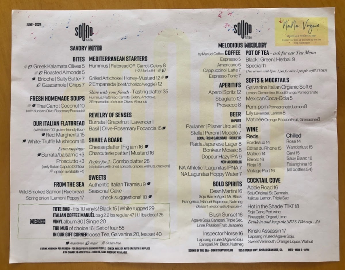 Welcome to Sound by the Sea, a unique oasis nestled along Oceanside's coast. This trendy venue transcends a typical restaurant experience, combining gastronomic delight with an invigorating musical atmosphere. Their menu features an enticing selection of coffee options, including an invigorating Espresso Tonic and a comforting Cappuccino-Latte, which perfectly contrast with the vibrant local vibe.